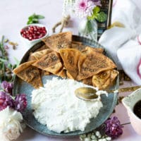 You simply cannot miss out on this Labneh. It’s a Labneh Dip with Zaatar Pistachio Mint Olive Topping! Sprinkled with fresh pomegranate seeds and served with pita chips – this easy labneh recipe is the perfect appetizer or can be served as part of a mezze platter drenched in Moroccan Olive Oil.