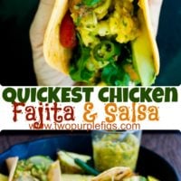 This quick Chicken Fajita with Mango Pineapple Salsa i, in fact,t the quickest way to have a healthy, Mexican dinner on the table! No fajitas marinades, or fancy techniques BUT tons of flavour using my fajitas seasoning! Tex-Mex spiced juicy chicken loaded on tortillas and topped with an easy 3 min food processor Mango Pineapple salsa— this is as YUMMY as it gets!